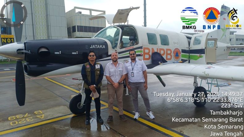 “Area sasaran berada di perairan utara Jawa Tengah yang secara meteorologis masih berpotensi mendukung pertumbuhan awan hujan,” ungkap Flight Scientist PT Makson Sukses Pratama, Fadhlan Rizakul Hafidz.